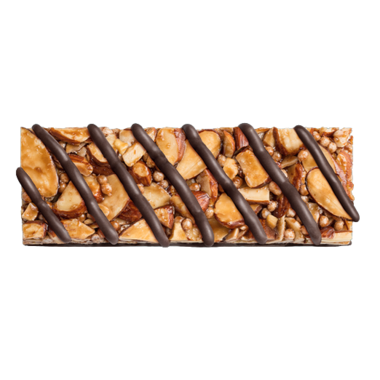 Almonds, Sugars (tapioca syrup, cane sugar, honey), Palm kernel oil, Rice flour, Inulin, Peanuts, Canola oil, Cocoa powder, Cocoa mass, Sea salt, Natural flavour, Soy lecithin, Tocopherols, Cocoa butter. Contains: Almonds, Milk, Soy. May Contain: Tree Nuts, Sesame Seeds.