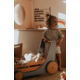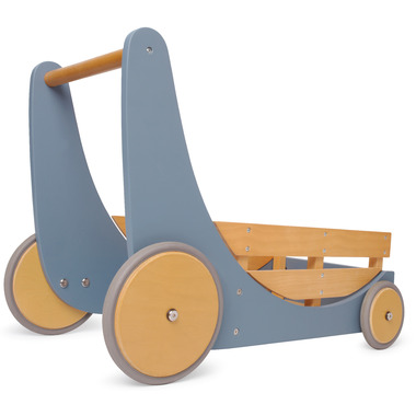 Handmade with replenishable birch wood, styled with sustainably-painted beechwood sides, fitted with adjustable wheels that have rubber trim to prevent scratches and sitting at a handlebar height of 17 inches (43 centimeters), the Kinderfeets Cargo Walker is an unrivaled option for your tiny tot! Once your child perfects walking independently, the back wheels can easily be removed to increase maneuverability. The wooden rack is also removable for toy storage.
