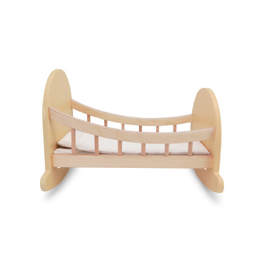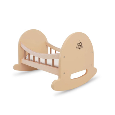 The Kinderfeets Doll Crib is a classic wooden bed with 100% cotton bedding that provides a comfy, snuggly space for favorite dolls and stuffed animals. The easy-to-rock design makes it simple for little ones to soothe their dolls to sleep. Handcrafted from sustainable birch plywood, solid beech, and engineered wood.