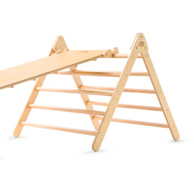 Kinderfeets Pikler Ramp & Slide: The 2-sided/reversible Pikler Ramp & Slide serves as an infinite number of structures! Today it could be a slide, tomorrow a climbing device or bridge, and the next day a walkway or imaginary entrance to your castle. Through active developmental play with the Pikler system, children gain physical and cardiovascular strength, build self-esteem, improve gross motor skills and explore their boundless imagination. Crafted using responsibly-sourced birch plywood and beech wood, it's a wonderful sustainable option for mobile toddlers exploring their adventurous side.