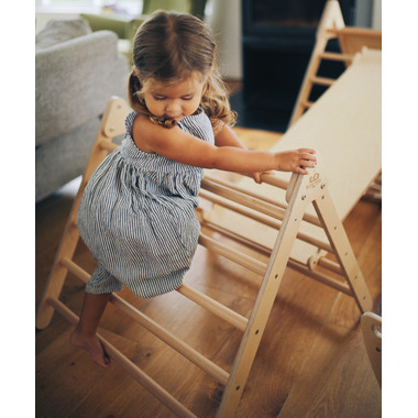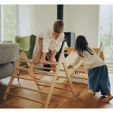 Each of the Pikler accessories is compatible with the others, and secure locks connect the system's pieces safely and effectively while holding them in place. Link them together in a variety of ways to create your very own play ground — designed just the way you like! You can switch it up daily to explore new challenges and create unique obstacle courses.