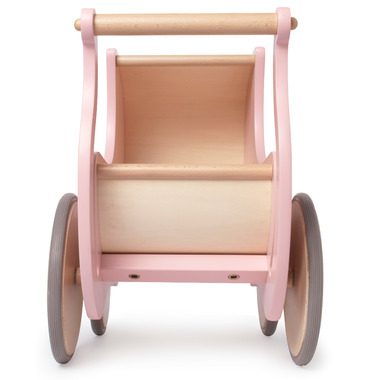 Handmade with replenishable birch wood, fitted with large wheels that have rubber trim to prevent scratches and sitting at a handlebar height of 17 inches (35 centimeters), the Kinderfeets Pram 2-in-1 Walker is a unique option for newly active children.
