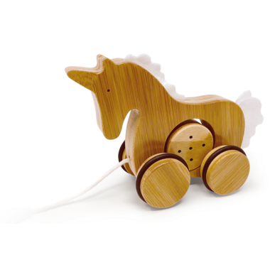 Come explore your imagination with the Kinderfeets Push & Pull Animals! Handmade with durable bamboo and outfitted with rubber-rimmed wheels to prevent scratches to household surfaces, each animal makes a soft jingle sound when moved to stimulate active engagement.