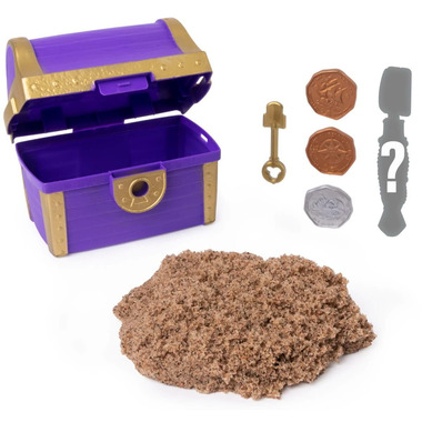Includes: 6oz Kinetic Sand, 1 Treasure Chest, 1 Key, 1 Surprise Tool, 3 Coins