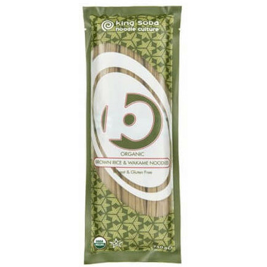 King Soba's Organic Brown Rice & Wakame Noodles are ideal for vegetarians, vegans and celiacs. The most tender sea vegetable of them all, the Wakame sea vegetable is high in minerals such as iron and calcium. As well, wakame is also rich in dietary fibre and potassium, which is thought to cleanse and detoxify the body of harmful toxins!