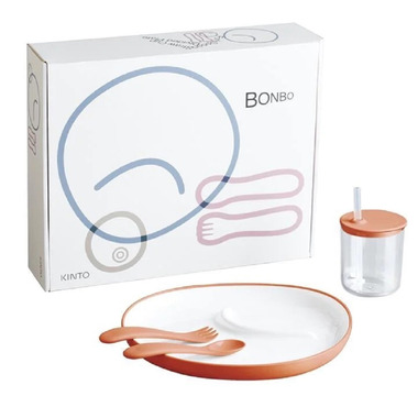 BONBO is designed for creating fun and fond memories around the table with kids and babies. It comes in sizes and shapes which are suitable for baby food and kids' meals. Made of durable materials, the items can be used comfortably by kids as well as the adults kids at heart. The four piece set includes the large plate, straw cup 200ml, spoon, and fork.