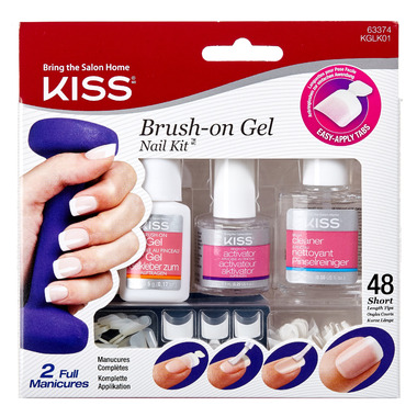 Kiss Brush On Gel - Specially formulated for durability, with a perfect white tip. Mistake-proof, self-leveling formula sets to a smooth and shiny gel.