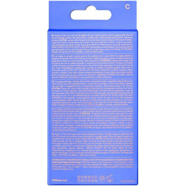 REMOVAL: Trim and file surface to disrupt protective top coat. Use KISS Glue Off as directed (sold separately) or soak nails in acetone polish remover until soft. Wipe off softened nails & glue. Do not force or pull nails off.