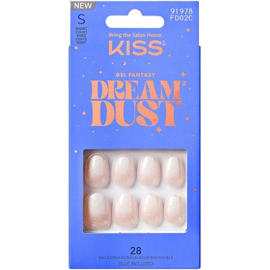 This latest extension of KISS Gel Fantasy is MAJOR! Get a shimmering, crushed glitter effect and instantly elevate your mani with the hottest chrome and glazed finishes for that sleek, modern, trendy look. Their special coating technology harnesses the power of pearl and glitter pieces, working their magic to create a mesmerizing, glowing, and iridescent appearance that will captivate everyone in your orbit. But these nails are more than just a pretty face; the exclusive flexible design ensures that you enjoy not only style but also durable and comfortable wear that's perfect for everyday life. The short coffin fashion nails in this collection are an elegant shade of white, adorned with glittery accents that add that extra touch of charm to your look. And you'll be pleased to know that hassle-free removal is a given, leaving no mess and causing no stress. With the extreme shine and volume provided by the gel top coating, your nails will not only sparkle but also command attention.