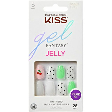 Prepare to be mesmerized by KISS Gel Fantasy Jelly ready-to-wear gel finish nails, a nail innovation that brings sheer colour, 3D texture, and a coloured glass-like effect that's truly beyond WOW to your fingertips. These false nails showcase the chicest colour and design mixes and are ready to wear, durable, flexible, and exceptionally easy to apply. Jelly Fantasy false gel nails introduce a translucent jelly high shine finish that's so smooth it looks like glass, making your manicure a captivating work of art that is as impressive as it is stylish. The multicoloured translucent jelly nails featured in this collection take on an on-trend short-length and coffin-shaped design, allowing you to embrace the allure of sheer beauty without sacrificing style. Plus, with a smudge-proof and waterproof formula, these nails ensure your manicure remains pristine and vibrant no matter where life takes you.