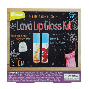 Do you like lava lamps? Now you can create your own mini lip gloss version from our Lava Lip Gloss craft kit! Keep your lips moisturized and shiny with this award-winning, groovy 60s-inspired lip gloss. Learn how simple it is to mix together organic castor oil, organic safflower oil, all-natural flavors and colors in your kitchen lab! Give your lip gloss tube a light turn and prepare to be mesmerized as the oil mixture and colored glycerin move freely around each other… just like a lava lamp! Includes customizable sticker labels!