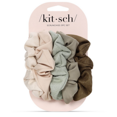 Add stylish and chic flair to your everyday ponytail or bun with Kitsch Assorted Textured Scrunchies. Your new go-to accessories, these soft scrunchies are gentle on your strands, prevent creasing, and help reduce breakage when you pull your hair up. Comes in a pack of 5 with an assortment of suede and smooth materials, all in earthy neutrals that are perfect to mix and match with any ensemble. Plus, they also look cute when worn as wrist candy!