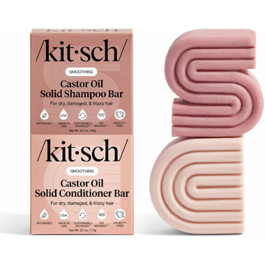 The Kitsch Castor Oil Shampoo + Conditioner Bar Combo is formulated with castor oil designed to hydrate, balance, and soothe scalp irritation. It nourishes your scalp to help reduce hair breakage and damage, and deeply nourishes dry and damaged hair for stronger, more hydrated-looking strands.