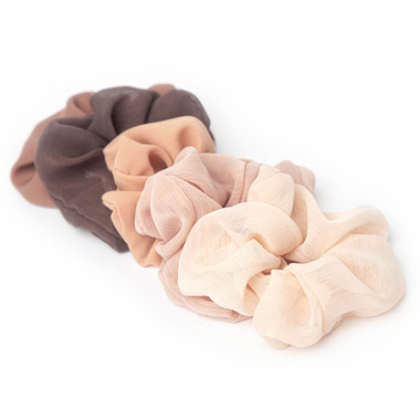 Crepe Scrunchies card features 5 hair scrunchies in assorted Terra Cotta tones.