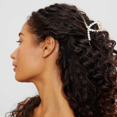 The Kitsch Metal Rhinestone Loop Claw Clip is an of-the-moment shape with forever appeal.