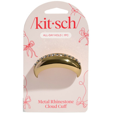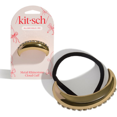 • Turn up the polish on your ponytail with the Kitsch Metal Rhinestone Medium Cloud Cuff - White. Designed to bring understated elegance to any hairstyle, this minimalist metal cuff features a soft rhinestone shimmer that catches the light just right. Whether you're styling a sleek pony, low bun, or braid, the discreet elastic band ensures a secure, no-show hold that stays put all day.
