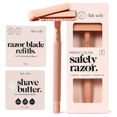Gives you the smoothest, closest, & most comfortable shave youve ever had. Single-blade, stainless steel razor blade means less drag, less irritation, less razor burn & fewer ingrown hairs even in sensitive areas. Chic, plastic-free design features an extra-long handle so you can shave sustainably & effortlessly. Pair with Kitsch Solid Shave Butter for the smoothest shave and super-soft skin. Prep skin with the Kitsch Body Dry Brush and/or Kitsch Exfoliating Body Sugar Scru.