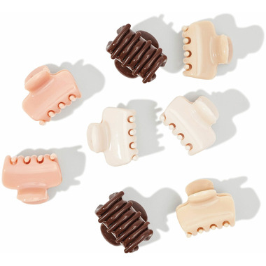 - Set of 8 mini claw clips in assorted neutral hues (2pcs in champagne, 2pcs in blush, 2 pcs in terracotta, and 2 pcs in brown)
