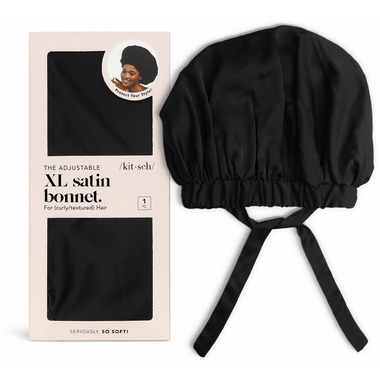 kitsch Kitsch Satin Sleep XL Adjustable Bonnet Black
