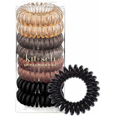 Telephone cord style hair ties! Creaseless and dent-free hair coils by KITSCH come in an assortment of brown hues. Headache & kink-free and perfect for every hair type!