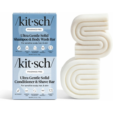 Kitsch Ultra Sensitive Solid Shampoo & Body Wash and Conditioner & Shave Bars are a 2-in-1 shampoo and body bar / conditioner and shave bar is formulated without fragrance or colors for those with sensitive skin.
