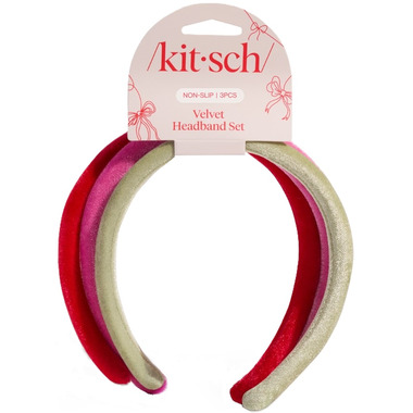 - Meet your new favorite finishing touch: the Kitsch Velvet Headband 3pc Set - Red, Pink & Green. Soft, simple, and perfectly festive, these plush headbands bring cozy elegance to any look-whether you're heading to a holiday party or styling your hair on the go. The no-slip design keeps hair comfortably in place without pinching or pulling, so you can wear them all day with ease.