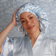 Directions: 1. Tuck all hair into the satin bonnet pocket. 2. Adjust the jersey band until it lays flat and snug to your hairline. 3. Secure the bonnet by wrapping the ties slightly above the forehead band, then tie them in a bow wherever desired.