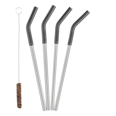 - 4 Black/Brushed Stainless 2pc food grade silicone and stainless steel straws