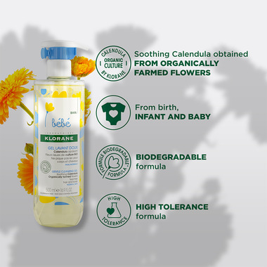 Biodegradable formula with soothing Calendula obtained from organic flowers. Rich in moisturizing agents, its formula with a soft and relaxing fragrance cleanses gently. The skin is protected from drying out and the hair is easy to detangle.