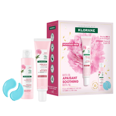 Discover the NEW sensitive skin Ritual with ORGANIC soothing Peony & Argan Oil gift set! Contains a 40ml full size Peony rich cream, and receive a 100ml milky-silky Peony make-up remover and 1 pair of the Smoothing and Soothing Hydrogel Eye patches as a gift.