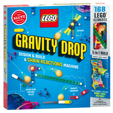 Build gravity-defying thrills that will leave you on the edge of your seat! Assemble a high-quality foot-and-a-half tall chipboard gravity drop tower full of LEGO contraptions. Unleash a pack of 6 wood balls from the starting gate and watch them race through a maze of twists and turns, sliding down ramps, flipping spinners, and whirling down a funnel, before they finally plonk into their destined buckets. (All included right out of the box!) But it doesn't stop there. Build and rebuild activities that include a gravity labyrinth, zip-line starter, grabber claw and more.