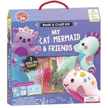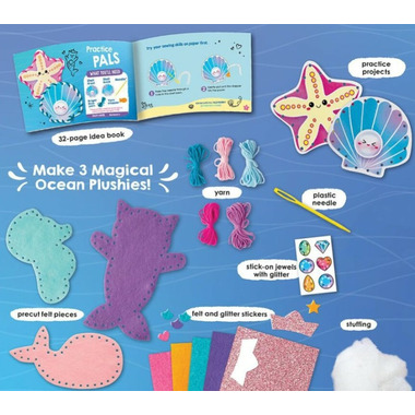 Build fine motor skills and learn to sew with a cat-tastic mermaid and her sweet sea critter friends. Start with simple lacing cards featuring a seashell and sea star, before you dive into the three felt projects: seahorse, narwhal, and a cute cat mermaid. Get creative by decorating your undersea friends with felt stickers and glittery embellishments. (Because every mermaid needs a crown!)