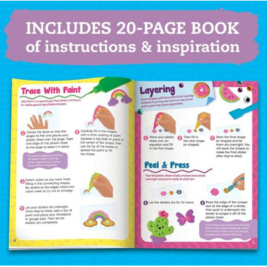 Use custom jelly paint to trace sticker designs from penguins to rainbows, then simply let the paint dry. This kit comes with everything you need to make up to 60 reusable stickers and then decorate them with rhinestones and wiggly eyes. These stickers are perfect for phone cases, water bottles, and screens.