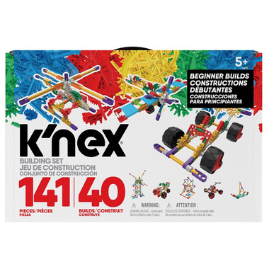 Building with KNEX is easier than ever, with the Beginner 40 Model Building Set! Featuring all new easy-build parts that allow children ages 5 and up to have a frustration-free building experience. The new parts Җ a barbell shaped rod that easily sandwiches between 2 connectors, and a flat panel piece that provides structural support were specifically designed to address the needs of younger builders, who can easily build 2 flat shapes and then connect them together into a 3-D creation! Plus, newly designed wheels pop right on ֖ they'll be on the go in no time! This set contains 141 parts and easy-to-follow, step-by-step building instructions and ideas for 40 different models. Your little builder can also use the parts to design and create from their own imagination! Packaged in a sturdy suitcase-style box with a handle for easy clean-up and portable storage. Building with KҒNEX supports a childs developmental growth and puts them on a path towards a better understanding of STEM subjects. As they fit the pieces together, theyҒre developing spatial awareness and honing their fine motor and dexterity skills. Give your child the gift of creativity with KNEX and think outside the blocks! Retail Package : 12" (W) x 3.5" (D) x 8" (H), Weight 1.6 lb