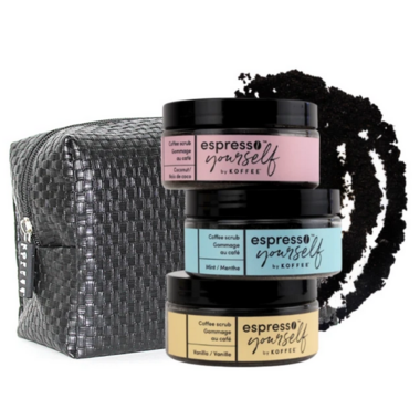 Never run out of scrubs again with Koffee Beauty's famous Espresso Yourself Bundle, an iconic trio that includes all your favourite fragrances for a full body treat. This bundle includes our best selling Coconut, Mint & Vanilla Scrubs, that are jam packed with antioxidants that will scrub, soften, condition, tone, sooth and awaken your tired skin. This scrub can be used on all skin types