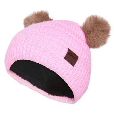 Get ready to bear the cold with this cute kids’ winter hat! Featuring a unique striped-knit pattern and two adorable faux-fur pompoms that look like little bear ears, the KOMBI toque is made with a blend of recycled polyester yarn and wool for more warmth. With a super-soft sherpa lining, this fully fashioned pompom hat will keep your little one cozy whether they're playing in the snow or running errands with you.