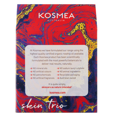 An assortment of 3 x mini Kosmea Products. Get a kick-start on your skin care with your Skin Trio designed to give you the first key steps in your Kosmea skincare routine. The Skin Trio is the most affordable way to trial the Kosmea skincare range for the first time. This best-selling gift collection has had a brand new, eye-catching re-design, making it fantastic for gifting!