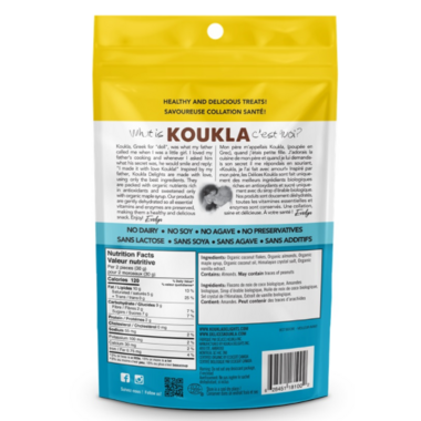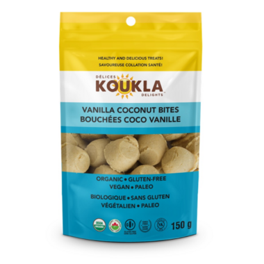 Vanilla coconut bites are healthy and delicious snacks that are organic, gluten-free, vegan and kosher.  Koukla Delights are sweetened exclusively with organic maple syrup from Québec and are the perfect blend of taste and nutrition.