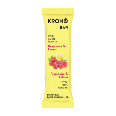 The Lemon & Raspberry Energy Bar is a burst of zest and sweetness, making it an irresistible choice for both fruit lovers and those seeking a nutritious energy boost. Krono Nutrition bar are proudly made in Canada.