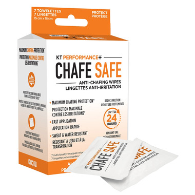 KT Performance+ Chafe Safe Anti-Chafing Wipes from KT TAPE are designed to give longer-lasting protection against chafing, blisters, and other skin irritations to help athletes stay focused on performing at their peak. In fact, Chafe Safe Wipes are designed to last up to 24 hours, so there’s no run, hike, ride, or training session it won’t cover. Chafe Safe Anti-Chafing Wipes unique formula contains a maximum concentration of glide agent, which is sweat and humidity resistant, and its single-use packs make it convenient to take on-the-go.
