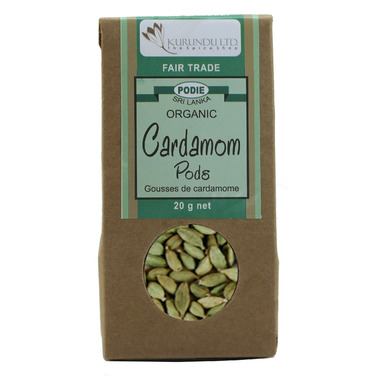 Kurundu cardamom pods come from Sri Lanka. They are certified organic and Fair Trade. As a legacy of colonisation, spice growers are still poorly paid. By supporting Fair Trade, you make the world a fairer place by helping to provide adequate housing, medical assistance, and education funds for spice growers and their families.