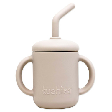 Kushies Silocone SiliSippy Cup with Straw Sand