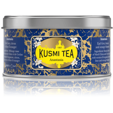 Orange Blossom-Flavoured Black Tea With Bergamot And Lemon. Inspired by the story of the Grand Duchess Anastasia, daughter of the Romanov dynasty’s Czar Nicholas II, this exclusive Earl Grey blend exemplifies Kusmi’s famous Russian taste with its combination of black tea, bergamot, lemon and orange blossom. Kept secret since its creation, Anastasia is one of the iconic recipes created by founder Pavel Kousmichoff.