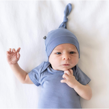 These knotted caps are made from ultra-soft bamboo rayon. The silky fabric is perfect for delicate skin, while the stretchy material accommodates a range of head circumferences. Available in a rainbow of modern colors, these caps are the finishing touch for any Kyte BABY outfit. For preemie or smaller babies, roll the edges of the cap up for a snug fit.