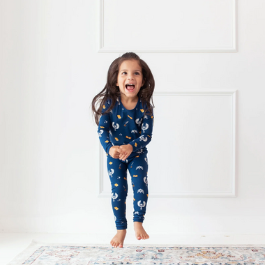 Your mini has grown so fast! Although they are no longer layette-sized, you can still dress them in the same super soft, all-natural bamboo rayon you both love. The oh-so-adorable toddler pajamas include a long-sleeved top and matching pants. They're perfect for story-time cuddles!