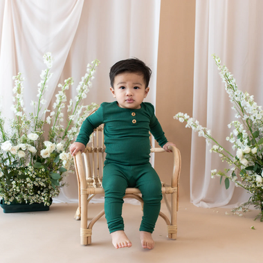 Kyte BABY Ribbed Henley Long Sleeve and Pant Set Forest