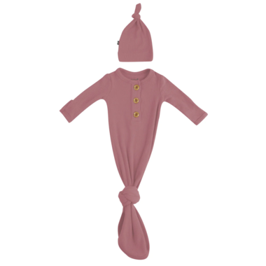 Kyte BABY Ribbed Knotted Gown with Hat Set Dusty Rose
