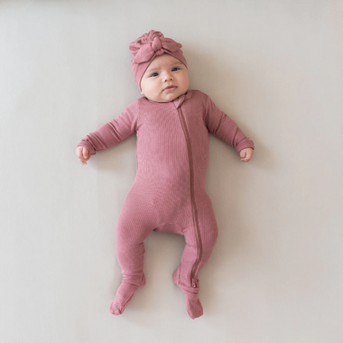 Kyte BABY Zipper Ribbed Footie Dusty Rose
