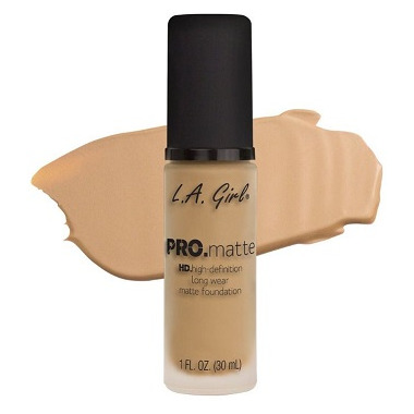 • L.A. Girl's Pro Matte Foundation evens out skin tone with a soft suede matte finish.