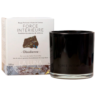 The INNER STRENGTH candle, associated with the root chakra, contains Obsidian crystals, known to help anchor our energy in the present and promote resilience in times of stress. The essential oils of cedarwood, geranium, grapefruit and sweet orange reinforce the feeling of stability and balance.